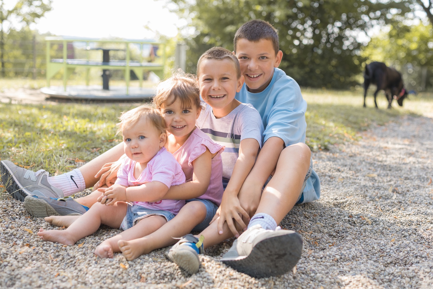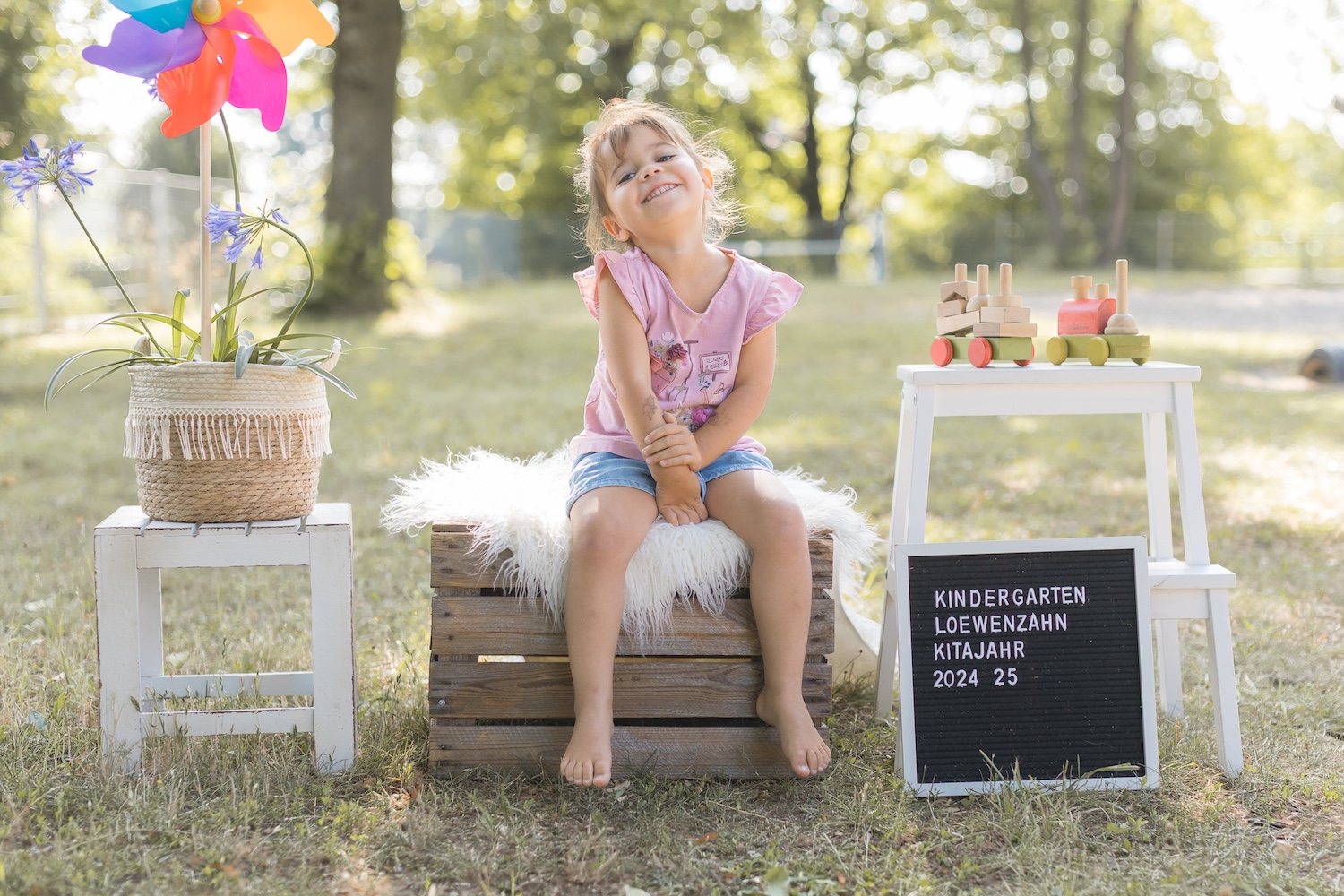 In Kindergärten fotografiere ich ausschließlich outdoor. Ich bringe ein kleines Fotoset mit und nutze zusätzlich die Gegebenheiten des Spielplatzes.